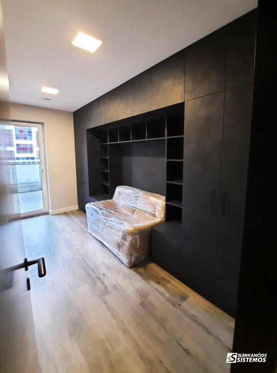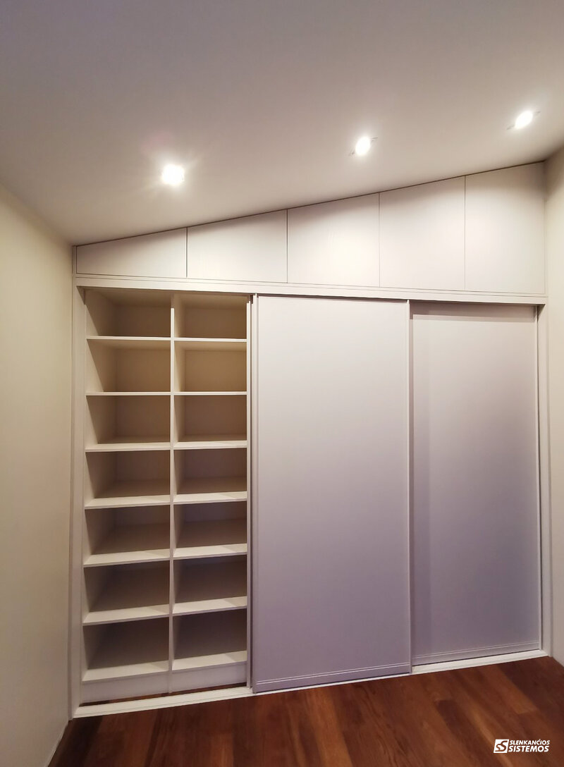 Spintos – tai neatskiriama kiekvieno būsto dalis. Jos gaminamos pagal individualius pageidavimus ir išmatavimus, net ir nepatogiausiose vietose, tokiose kaip palėpė, po laiptais ar kitur. Savo klientams siūlome platų medžiagų ir spalvų asortimentą spintų durims ir vidaus įrangai užpildyti. Vidaus įrangos iš laminuotų medžio drožlių, lukštu dengtų ar dažytų dulkių plokščių komplektaciją papildome patogia metaline įranga - krepšiais, laikikliais ir pan. Sukūrėme modulinę sistemą, kurios pagalba greitai ir lengvai suprojektuojame konkrečiai vietai pritaikytą spintos vidaus įrangą.